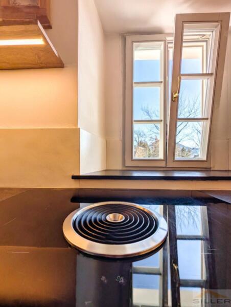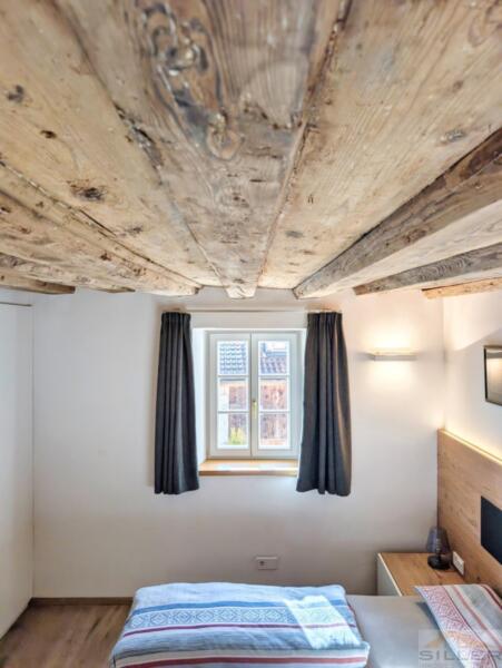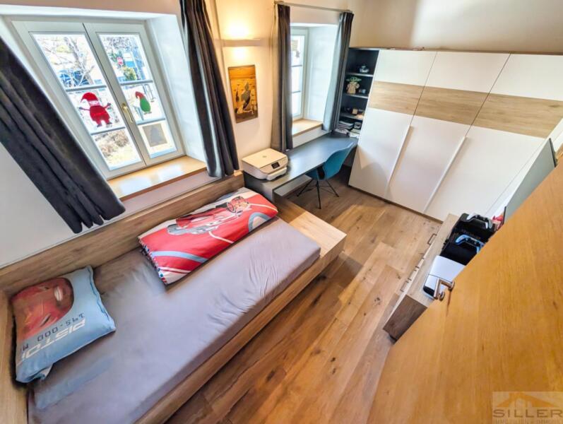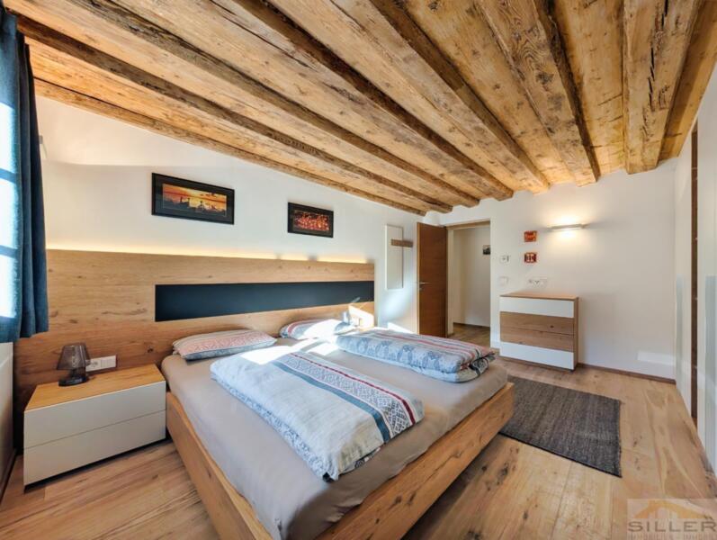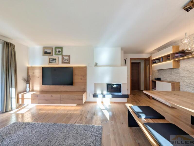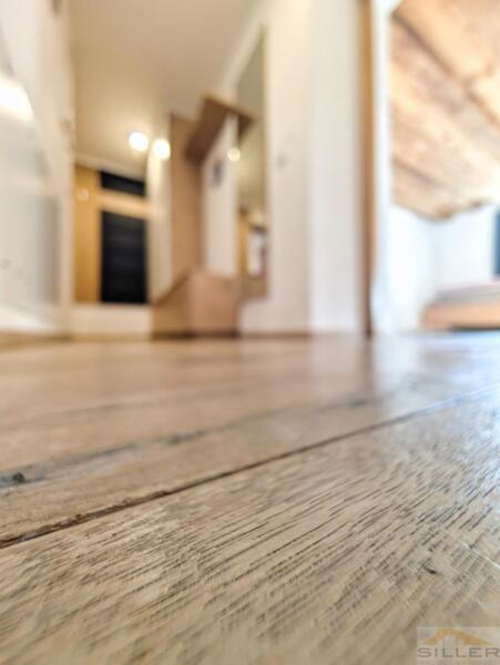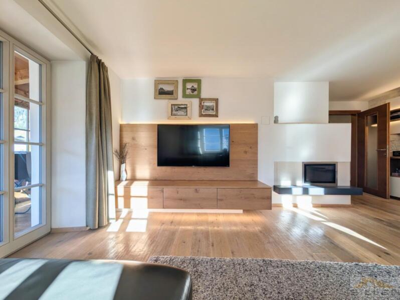 Trens hat sich das Dörfliche bewahrt: vertraute Gesichter, Kinder, die draußen spielen, und kurze Wege zu allem, was wichtig ist. Bank, Bäckerei, Geschäfte, Bushaltestelle, Vereinshaus und Gemeindeämter sind in maximal fünf Gehminuten erreichbar.Mittendrin steht ein denkmalgeschütztes Haus mit Wandmalereien, Gewölben und alten Holzbalken im Inneren – ein Gebäude nicht von der Stange, eines, das man nicht nachbauen kann.Die Wohnung erschließt sich ebenerdig und liegt talseitig im ersten Stock. Darunter öffnet sich ein privater Garten, der zur Wohnung gehört. Hinten das Dorfleben, vorne Ruhe im Grünen.Im Inneren erwartet Sie keine Standardausstattung, sondern die Handschrift eines Innenarchitekten: maßgefertigte Möbel in Küche und Schlafzimmern, ein großzügiges Wohnzimmer mit gemauertem Kaminofen sowie eine Wohnküche unter historischem Gewölbe. Drei Schlafzimmer bieten Platz für die Familie, zwei Bäder – eines davon mit Fenster – sorgen für entspannte Morgen.Eine hölzerne Veranda verbindet Innen- und Außenbereich, Keller und Garten runden das Angebot ab. Ein Stellplatz für zwei Fahrzeuge ist optional erwerbbar.Wer hier einzieht, kauft nicht nur eine Wohnung, sondern ein Stück echtes und einzigartiges Trens.