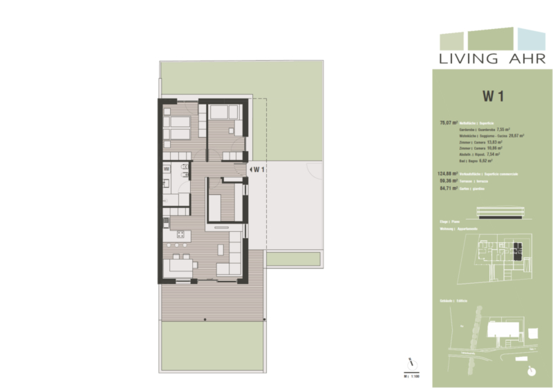 Die schön eingeteilten Wohneinheiten versprechen ein angenehmes Wohngefühl und sind jeweils mit einem Garten und/oder einer Terrasse ausgestattet. Garagenstellplätze können mit Aufpreis erworben werden. Die Keller sind im Preis inbegriffen.