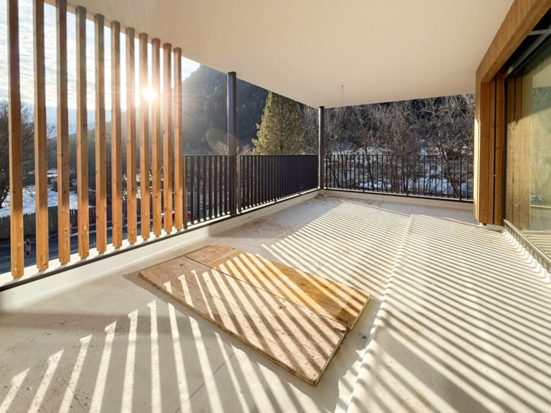 Diese 4-Zimmerwohnung im 2. Stock bietet modernen Wohnkomfort und viel Platz. Sie umfasst einen einladenden Eingangsbereich, drei gemütliche Schlafzimmer, zwei hochwertige Badezimmer, und einen großzügigen Wohn-Essbereich mit gemauerten Holzofen. Die große Terrasse lädt zum Entspannen ein. Zusätzlich gehört ein Keller im 1. Untergeschoss zur Wohnung. Eine Doppelgarage mit elektrischem Tor kann gegen einen Aufpreis erworben werden.