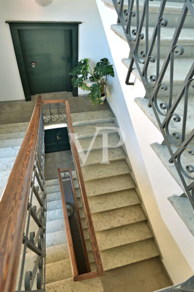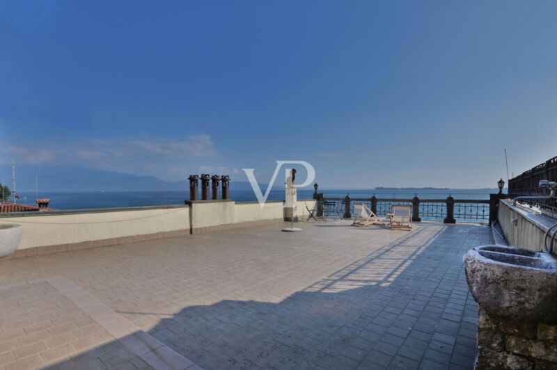 Die Immobilie, die derzeit in drei Wohnungen im ersten, zweiten und dritten Stock aufgeteilt ist, lässt sich in eine einzigartige Villa mit Aufzug umwandeln, in der bis zu fünf Schlafzimmer, fünf Bäder, ein heller Panoramawohnbereich im obersten Stockwerk mit direktem Zugang zur spektakulären 90 m² großen Dachterrasse, alle mit Seeblick, sowie Räume für Wellness und Komfort wie ein Kinoraum, ein Spa, eine Waschküche und technische Räume zur Verfügung stehen.