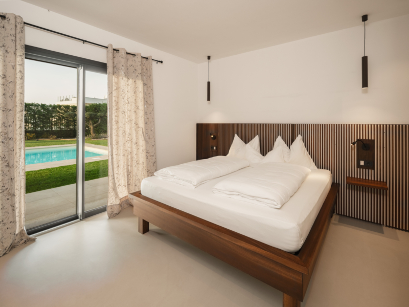 Besonders hervorzuheben ist, dass alle Zimmer direkten Zugang zum liebevoll angelegten Außenbereich bieten. Dieser umfasst einen weitläufigen Garten und eine großzügige Terrasse.