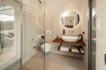 Im Inneren empfängt Sie ein lichtdurchfluteter Wohnbereich mit integrierter Einbauküche, der durch seine Offenheit eine einladende Atmosphäre schafft. Von hier aus gelangen Sie zu den zwei großzügigen Doppelschlafzimmern, von denen eines über ein eigenes Badezimmer verfügt. Ergänzt wird das Raumangebot durch ein weiteres Badezimmer sowie einen praktischen Waschraum.