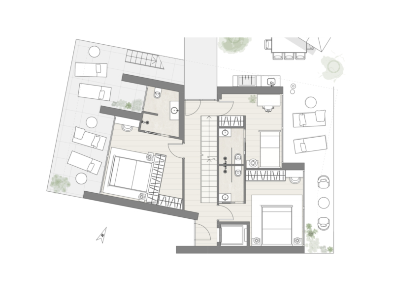 Die Innenräume überzeugen durch eine moderne und durchdachte Raumaufteilung: ein lichtdurchfluteter Wohnbereich, elegante Schlafzimmer und stilvolle Bäder. Im Erdgeschoss gelangt man direkt in den privaten Garten mit einem exklusiven Pool – ideal zum Entspannen in vollkommener Privatsphäre. Im Obergeschoss lädt eine große Panoramaterrasse dazu ein, den atemberaubenden Seeblick zu genießen – ein echtes Highlight.
