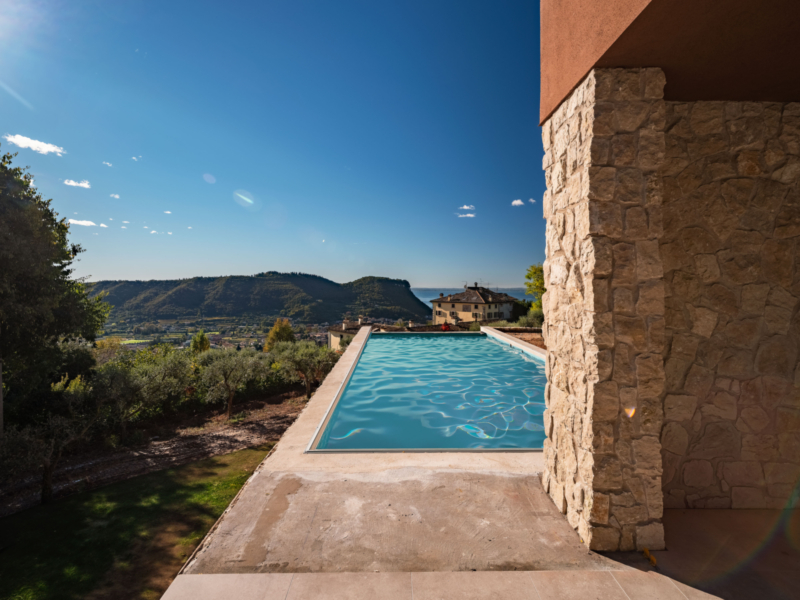 In herrlicher Panoramalage oberhalb des Ortskerns von Garda, im ruhigen und begehrten Bereich der „Beati Alti“, steht eine exklusive Einzelvilla zum Verkauf. Die Immobilie befindet sich in absoluter Alleinlage – ohne angrenzende Durchgangsstraße – und bietet einen weitreichenden, offenen Blick auf den Gardasee. Die Villa wird nach modernsten energetischen Standards der Klasse A4 errichtet und überzeugt durch zeitgemäße Architektur, hochwertige Materialien und eine nachhaltige Bauweise.