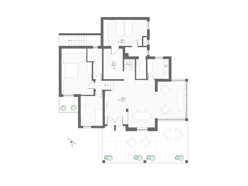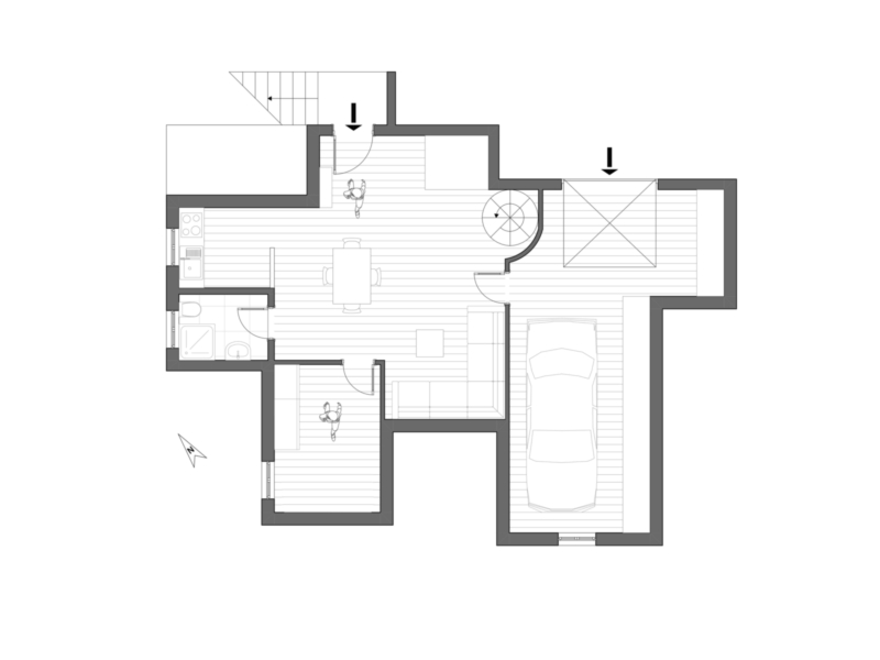 Das Untergeschoss verfügt über eine geräumige Taverne, die über eine Holz-Wendeltreppe mit dem Hauptgeschoss verbunden ist und zusätzlich einen unabhängigen Zugang bietet. Des Weiteren befinden sich hier ein Technikraum sowie ein großzügiger Kellerraum, der sich ideal als Abstellraum oder zur Unterbringung von Fahrrädern und Motorrädern eignet.