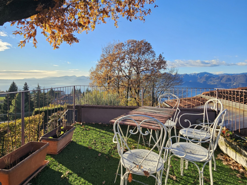 Das Haus verfügt über eine große, überdachte Veranda, die zum Essen im Freien und Entspannen einlädt. Zudem gibt es einen Panoramabalkon mit wunderschönem Blick auf die umliegende Landschaft.