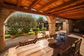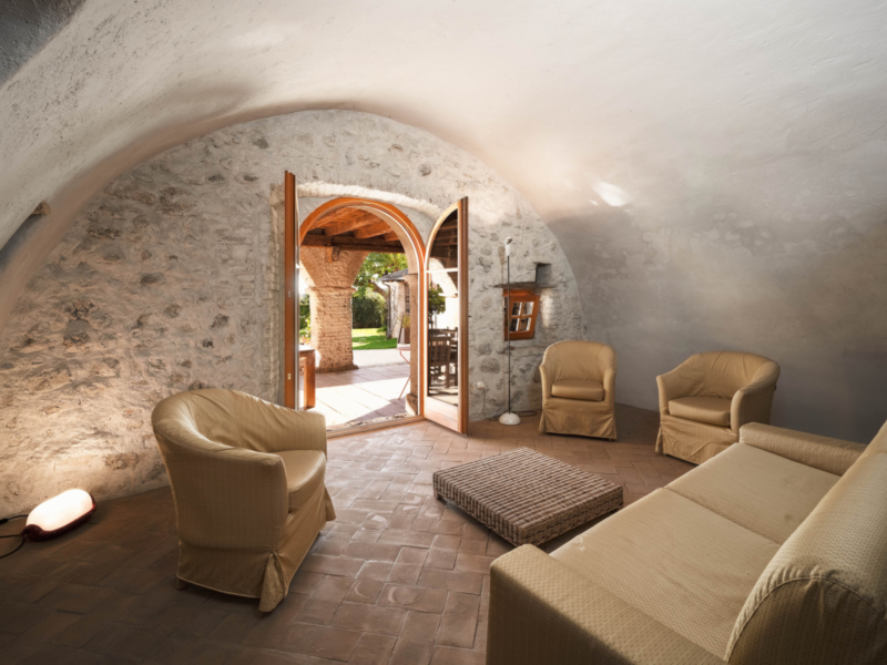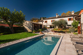 Jede Einheit verfügt über einen eigenen Zugang sowie helle, großzügig geschnittene Räume, die durch klare Linien und eine harmonische Verbindung von Tradition und Moderne überzeugen. Hohe Decken mit sichtbaren Holzbalken, Terrakottaböden und Natursteinwände verleihen den Innenbereichen eine warme, authentische Ausstrahlung. Besonders hervorzuheben ist die Hauptwohnung, die mit ihrem großzügigen Grundriss und repräsentativen Wohnbereichen als stilvolles Herzstück des Anwesens besticht. Der weitläufige Hain mit alten Oliven, gepflegten Wiesen und üppiger Bepflanzung umrahmt das Anwesen und prägt seinen unverwechselbaren Charakter.