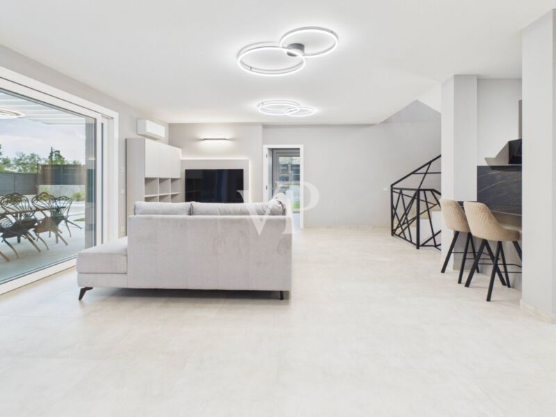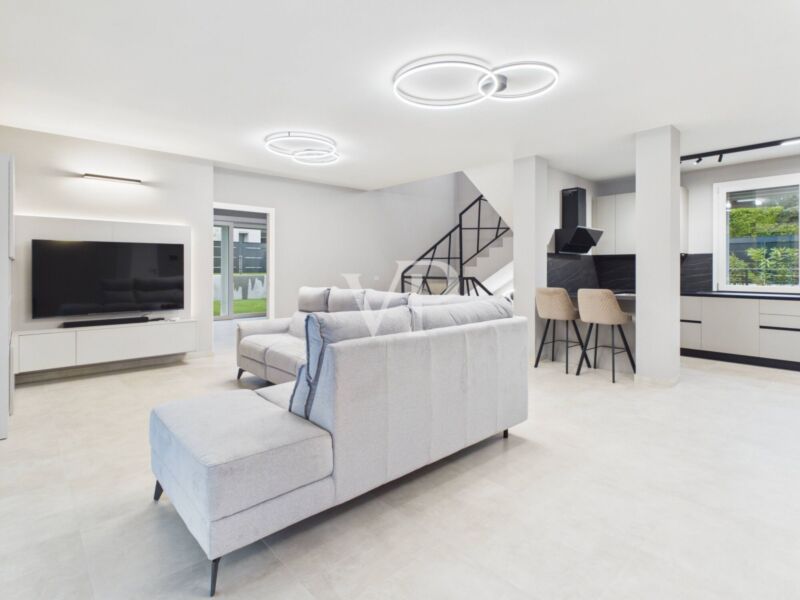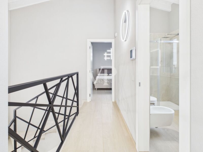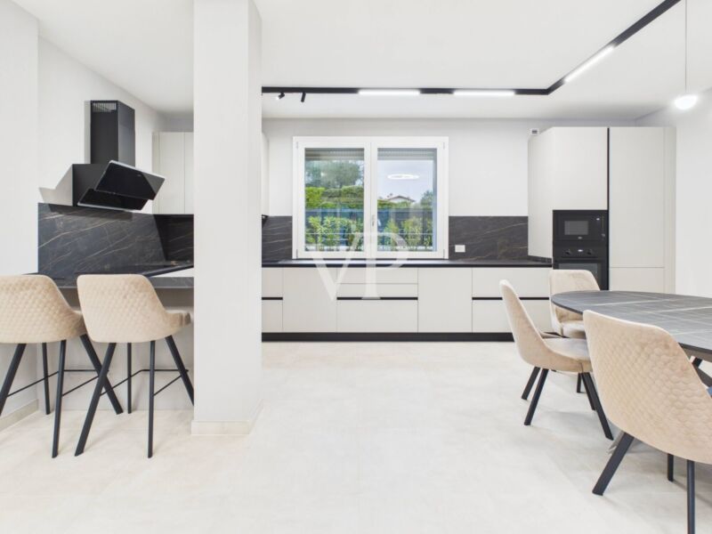 Die Villa mit einer Nutzfläche von 361 m² (300 m² Bodenfläche) erstreckt sich über zwei oberirdische Ebenen und ein Untergeschoss und genießt eine volle Belichtung, die für Helligkeit und Atmosphäre zu jeder Tageszeit sorgt. Die großen Fenster und die Harmonie zwischen Innen- und Außenbereich unterstreichen den eleganten und modernen Stil der gesamten Residenz.