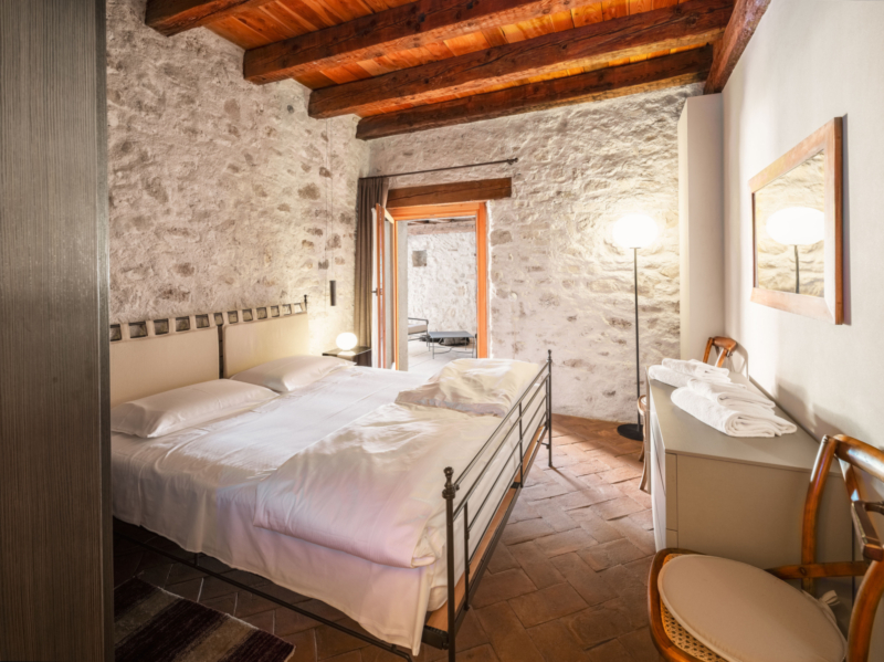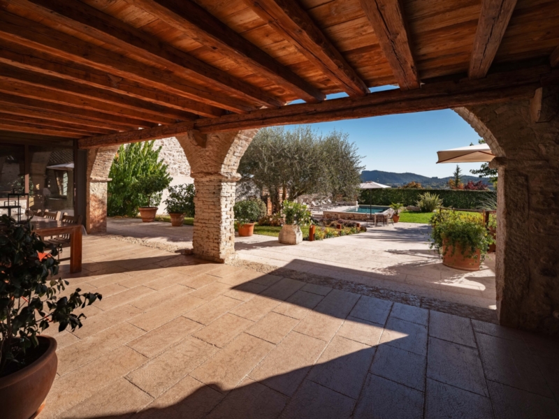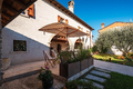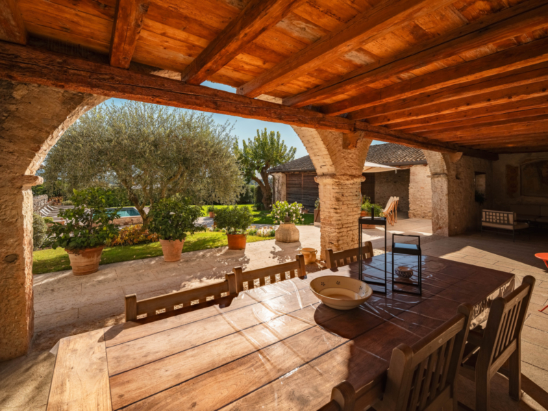 Jede Einheit verfügt über einen eigenen Zugang sowie helle, großzügig geschnittene Räume, die durch klare Linien und eine harmonische Verbindung von Tradition und Moderne überzeugen. Hohe Decken mit sichtbaren Holzbalken, Terrakottaböden und Natursteinwände verleihen den Innenbereichen eine warme, authentische Ausstrahlung. Besonders hervorzuheben ist die Hauptwohnung, die mit ihrem großzügigen Grundriss und repräsentativen Wohnbereichen als stilvolles Herzstück des Anwesens besticht. Der weitläufige Hain mit alten Oliven, gepflegten Wiesen und üppiger Bepflanzung umrahmt das Anwesen und prägt seinen unverwechselbaren Charakter.