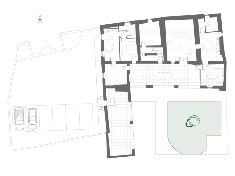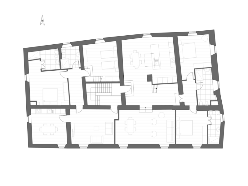 Das Anwesen besteht aus vier unabhängigen Wohneinheiten und wurde mit großer Sorgfalt restauriert. Dabei blieb der historische Charakter erhalten, während hochwertige Materialien, moderne Installationen und geschmackvolle Details eine zeitgemäße Wohnqualität schaffen.