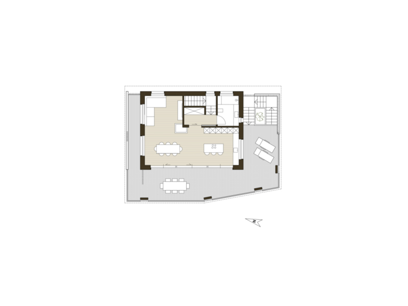 Das Obergeschoss bietet einen großzügigen Wohnbereich mit offener Küche, ein Badezimmer sowie eine Terrasse mit herrlichem Seeblick, die den Wohnraum stilvoll erweitert und ein besonderes Wohngefühl vermittelt.