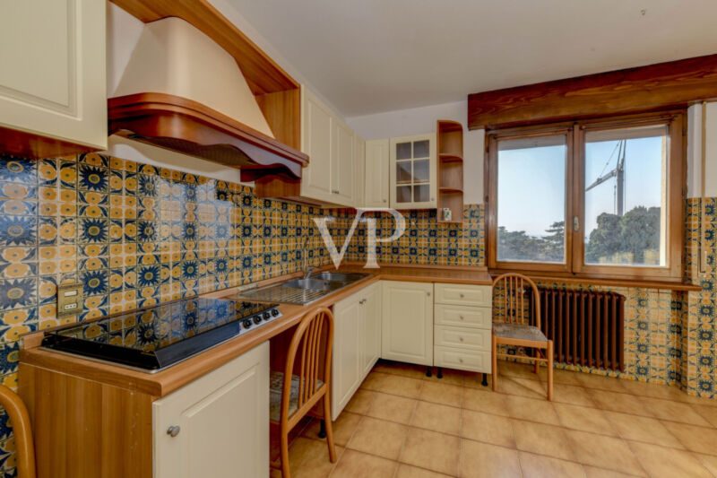 Die Wohnung besticht durch eine funktionale und harmonische Raumaufteilung. Die separate Küche und das Wohnzimmer führen direkt auf die herrliche Panoramaterrasse – der perfekte Ort, um den Blick auf den Gardasee, die Skaligerburg und den Monte Baldo zu genießen. Das Wohnzimmer ist geräumig und lichtdurchflutet und bildet das Herzstück der Immobilie – ideal für entspannte und gesellige Stunden.