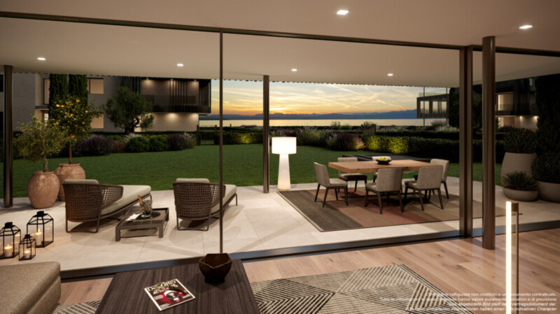 Die großzügigen Wohnungen verfügen entweder über große Privatgärten oder über großzügige Terrassen. Alle Wohneinheiten bieten einen Blick auf den See.