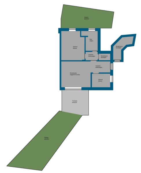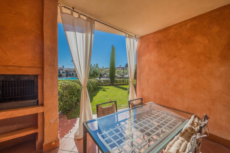 Besonders hervorzuheben sind die großen Außenbereiche: Eine überdachte Terrasse (Portico) mit gemauertem Grillplatz lädt zum Entspannen und geselligen Beisammensein ein. Ergänzt wird sie durch zwei private Gärten, die sich auf der Süd- und Nordseite der Wohnung befinden und sowohl Sonne als auch Schatten bieten – ideal für jede Tageszeit.