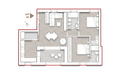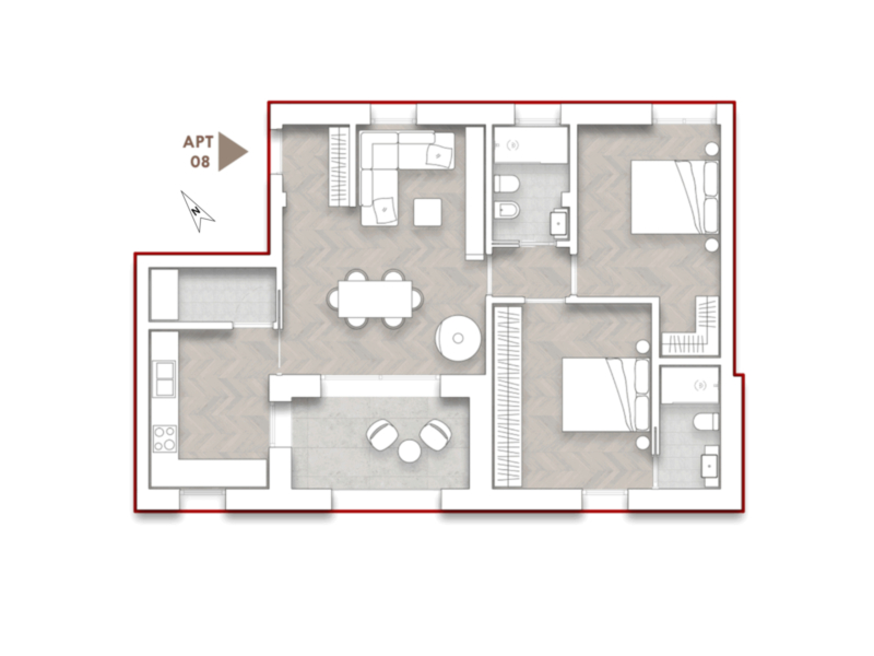 Die Wohnung verfügt über zwei Schlafzimmer, eines davon mit eigenem Bad en Suite, ein zweites Bad steht ebenfalls zur Verfügung.