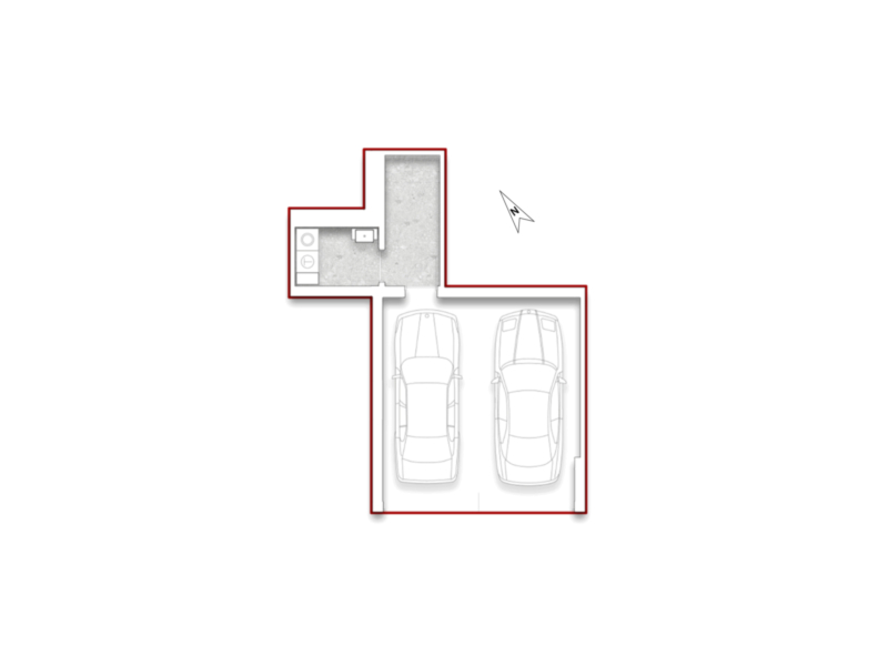 Das offene Wohnzimmer, das vom separaten Essbereich und den Abstellraum durch eine Wand getrennt ist, führt zu einer großen Terrasse, ideal für Mahlzeiten im Freien und Entspannung.