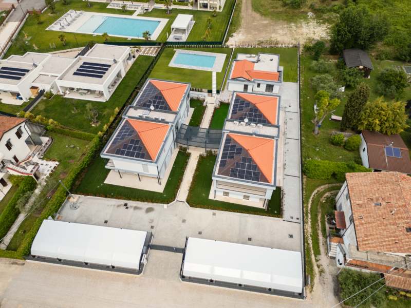 In Lazise bieten wir einen neuen Immobilienkomplex, nur 900 m vom historischen Zentrum von Lazise und alle Dienstleistungen bequem zu erreichen ist, zum Verkauf an. Der Bau besteht aus 4 Doppelhaushälften mit jeweils zwei Einheiten. Die Wohnungen im Erdgeschoss bestehen aus einem großen verglasten Wohnbereich mit Zugang zum privaten Garten, einer großen gepflasterten Terrasse, einem Badezimmer mit Fenster und Dusche, einem Schlafzimmer mit Doppelbett und einem zweiten Schlafzimmer. Die Wohnungen im ersten Stock haben die gleiche Innenaufteilung und verfügen über große Terrassen. Die Anlage verfügt außerdem über eine Sonnenterrasse mit einem 60 m² großen Swimmingpool, der sich in einem von den Villen getrennten Bereich befindet, um die Wohnhäuser nicht zu stören.