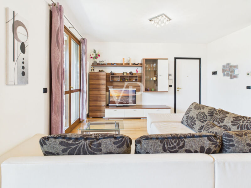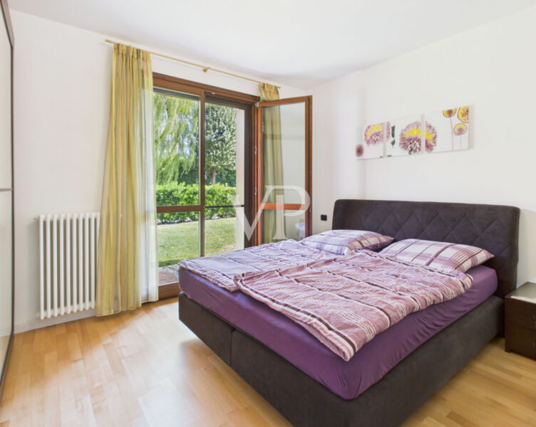 Residenz "I Molini" - Helle Wohnung im Erdgeschoss, modern eingerichtet. Wohnbereich mit Wohn-/Esszimmer, Sat-TV und Klimaanlage; komplette offene Küche (Backofen, Geschirrspüler, 4-Flammen-Induktionskochfeld, Mikrowelle). Ausgang zur Terrasse und zum großen Privatgarten mit Gartenmöbeln.