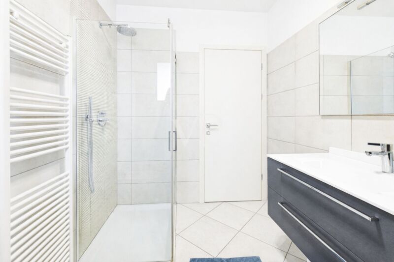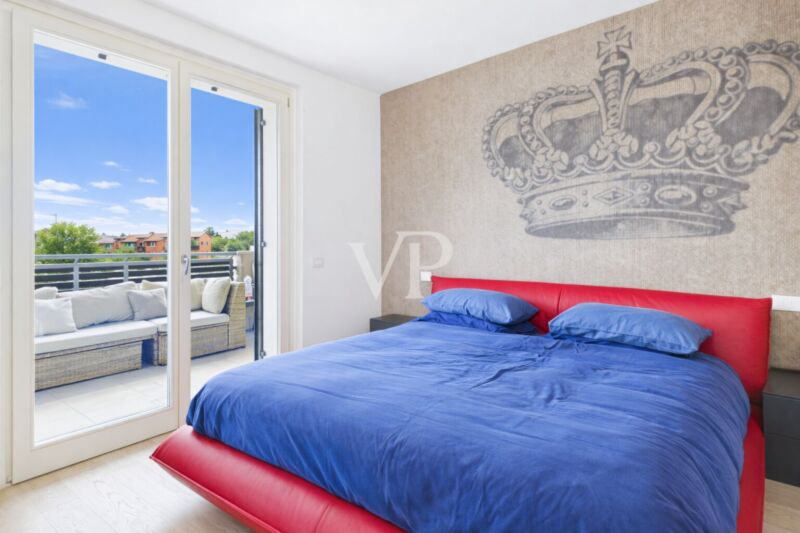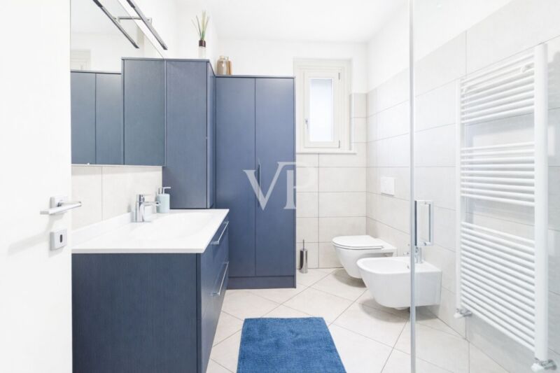 Die Wohnung ist mit hochwertigen Materialien ausgestattet und verfügt über modernste Technologie für maximale Energieeinsparung und Sicherheit: Wärmepumpen-Klimaanlage, Solar- und Photovoltaik-Paneele, Hausautomatisierungssystem, Alarmanlage und Safe. Die Immobilie wird durch eine praktische Garage im Untergeschoss ergänzt.