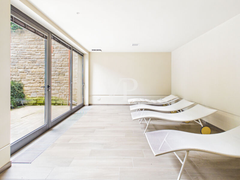 Was dieses Angebot wirklich einzigartig macht, ist der Wohnkontext, in den es eingebettet ist und der als echte Wellness-Oase konzipiert ist. Neben dem Gemeinschaftspool mit Solarium steht den Bewohnern ein voll ausgestatteter Fitnessraum und ein SPA-Bereich mit Whirlpool, Sauna, türkischem Bad und Dusche mit Chromotherapie zur Verfügung.
