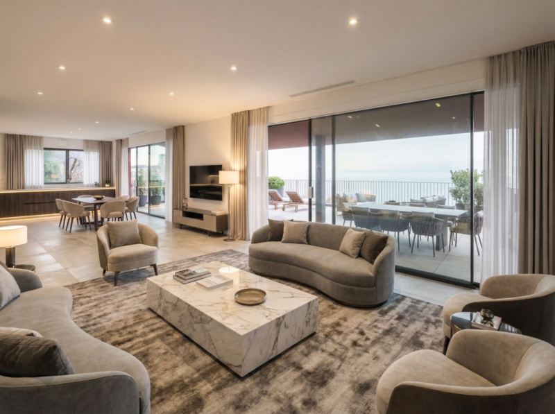 Das Appartment ist bequem über einen privaten Aufzug erreichbar und verfügt über einen großzügigen Wohn- und Essbereich, drei Schlafzimmer, zwei davon mit Bad en suite, sowie ein weiteres Badezimmer. Die weitläufige Panoramaterrasse eröffnet einen beeindruckenden Blick auf den Gardasee, während ein geschützter Gartenbereich zusätzlichen Raum für Erholung bietet.