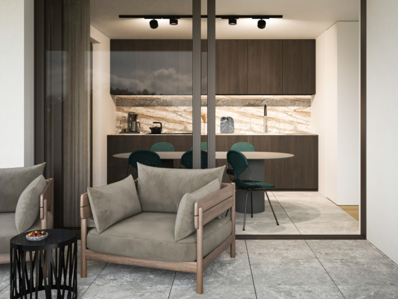 Ein besonderes Highlight ist der gepflegte Poolbereich mit großzügigen Liegewiesen, Natursteinverkleidung und geschmackvoll gestalteten Grünflächen, ideal zur Erholung. Ein Stellplatz in der Tiefgarage kann optional erworben werden und ermöglicht bequemes sicheres Parken in direkter Nähe zur Wohnung.