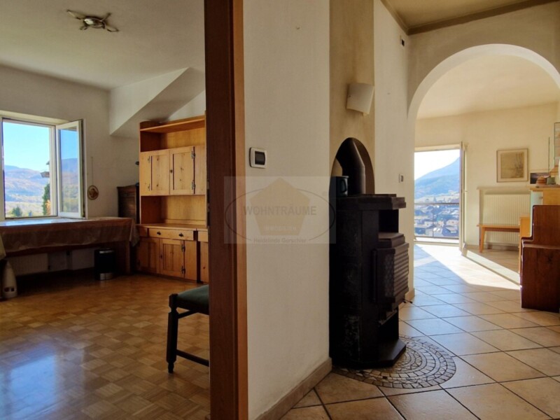 Die Wohneinheit besteht aus Diele, zwei geräumigen Schlafzimmern, Badezimmer mit Wanne und Fenster, Wohnküche und Südbalkon mit traumhaften Ausblick auf diese idyllische Gegend. Die Wohnung befindet sich einem dem Alter entsprechend guten und gepflegten Zustand und kann mit einigen Sanierungs- und Verbesserungsarbeiten zu einem kleinen Schmuckstück umgewandelt werden. Der Pelletofen im Hausgang sorgt für die wohlige Wärme in der gesamten Wohnung.