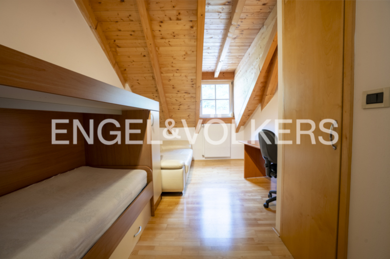 Dank zahlreicher Fenster und mehrerer Dachfenster ist die Wohnung außergewöhnlich hell und freundlich. Moderne Annehmlichkeiten wie eine Alarmanlage und eine autonome Gasheizung unterstreichen den hohen Wohnkomfort. Das großzügige Hauptschlafzimmer verwöhnt Sie mit einem einzigartigen Panoramablick auf die umliegende Bergwelt bis hin zum Latemar. Im Gästezimmer sorgt ein praktisches Stockbett für zwei zusätzliche Schlafplätze – ideal für Familie oder Freunde. Im Kaufpreis enthalten sind zudem ein Kellerraum sowie zwei Garagenstellplätze.