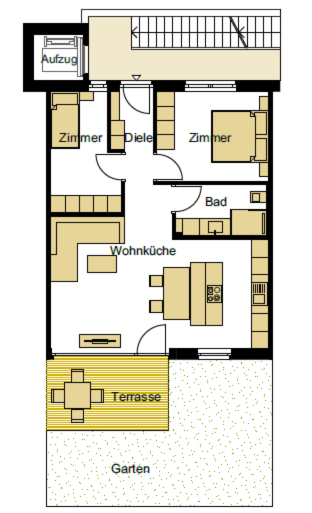 Zudem gehört zur Wohnung eine Terrasse mit ca. 12,80 m² und ein Garten mit ca. 27,90 m². Weiters verfügt die Immobilie über einen Keller im Untergeschoss.