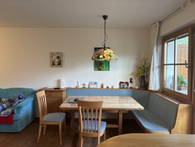 In ruhiger, zentrumsnaher Lage von Kastelruth befindet sich diese gepflegte Drei-Zimmer-Wohnung in einem ansprechenden Mehrfamilienhaus. Die Wohnung überzeugt durch eine durchdachte Raumaufteilung: Eine Garderobe empfängt Sie beim Eintritt, gefolgt von einem Kinderzimmer mit zwei Einzelbetten und einem Hauptschlafzimmer. Der offene Wohn- und Essbereich mit Balkon nach Süden schafft eine helle und angenehme Wohnatmosphäre. Das Badezimmer verfügt über ein Fenster und bietet somit Tageslicht und gute Belüftung. Eine Garagenbox und ein Keller komplettieren die Wohneinheit.