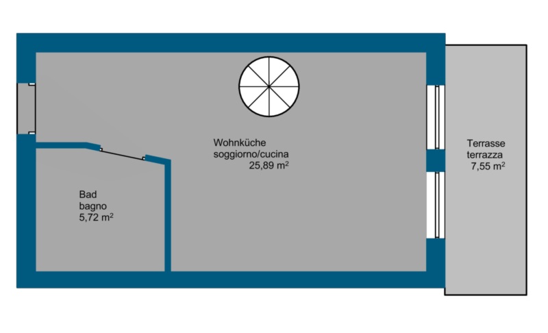 Die Duplexwohnung ist nach Südwesten ausgerichtet, wodurch die Räume den ganzen Tag über von natürlichem Licht durchflutet werden.