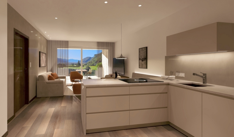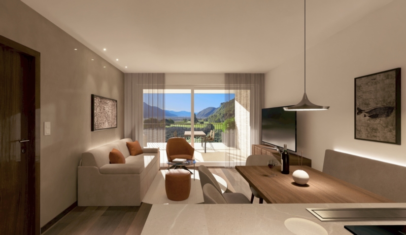 Am Ortsrand von Lana, direkt am Golfplatz und umgeben von Natur, entsteht ein exklusives Neubauprojekt mit nur acht Wohneinheiten. Die moderne 2-Zimmer-Terrassenwohnung im 1. Obergeschoss bietet auf ca. 71 m² Handelsfläche helle Wohnräume mit offenem Wohn-/Essbereich und Küche, ein Schlafzimmer sowie ein Badezimmer und eine großzügige, überdachte Süd-Terrasse. Die Architektur entspricht dem KlimaHaus-A-Standard und steht für modernes, nachhaltiges Wohnen. Ein privater Keller sowie eine optional erhältliche Doppelgarage (60.000 €) ergänzen das Angebot. Die Wohnung ist auch als Ferienwohnung geeignet.