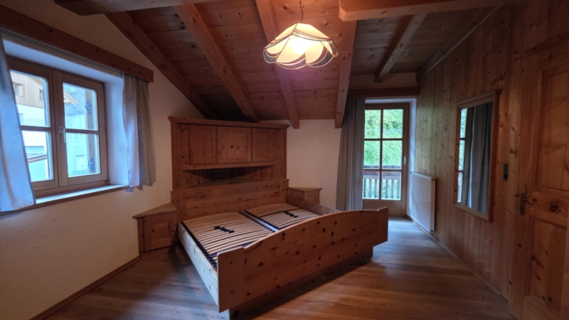 Zwei gemütliche Schlafzimmer, eingerichtet mit Massivholzmöbeln