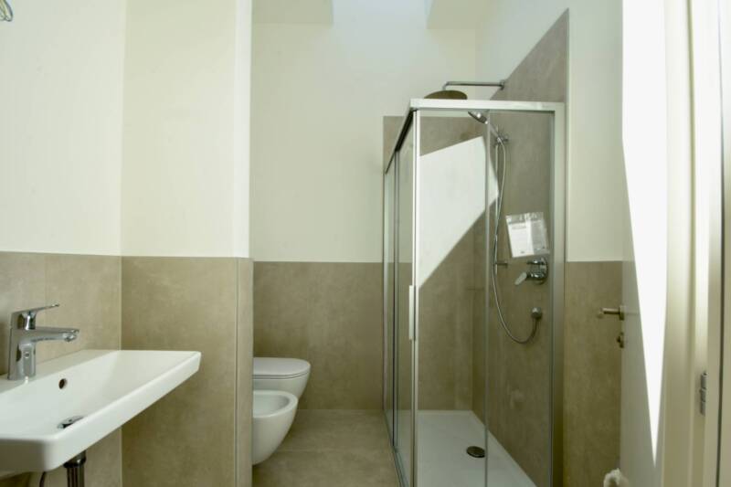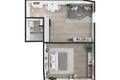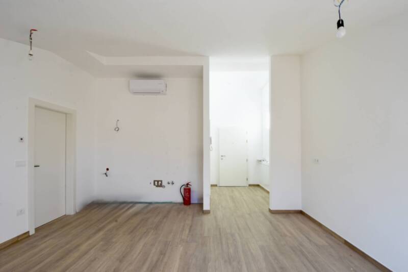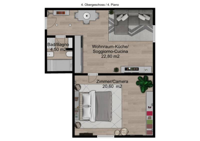 Im vierten und letzten Stock eines Wohnhauses mit Aufzug: komplett sanierte 2-Zimmer-Mansarde in Leifers. Funktional aufgeteilte Räume: Eingangsbereich, Wohnraum mit offener Küche, großzügiges Schlafzimmer und Badezimmer mit Dusche.