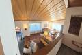 Das Herzstück der Villa ist das weitläufige Wohnzimmer mit seinen großen Fensterflächen, die den Raum in natürliches Licht tauchen. Der offene Kamin sorgt für eine gemütliche Atmosphäre, während die angrenzende Veranda den perfekten Übergang in den Garten schafft – ideal für entspannte Stunden im Freien.