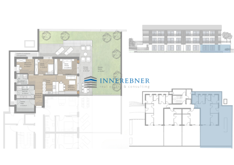Ein besonderes Highlight ist die große Terrasse mit angrenzendem Garten, die sowohl vom Wohnzimmer als auch von den Schlafzimmern zugänglich ist.
