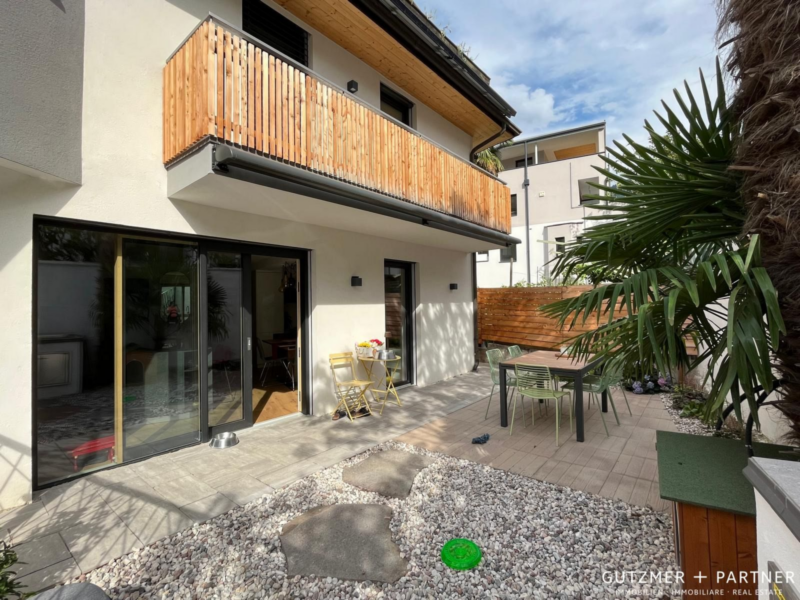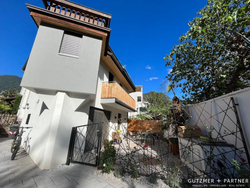 Exklusiv bieten wir ein neues vollständig eingerichtetes kleines Einfamilienhaus an, an drei Seiten freistehend, Klimahaus B, in bester Meraner Lage im Mittelweg , in einer exklusiven, sonnigen und ruhigen Lage mit Südostausrichtung. Diese 128 m2 Kataster Fläche trendige Residenz empfängt Sie mit Eleganz und Funktionalität.