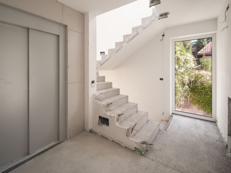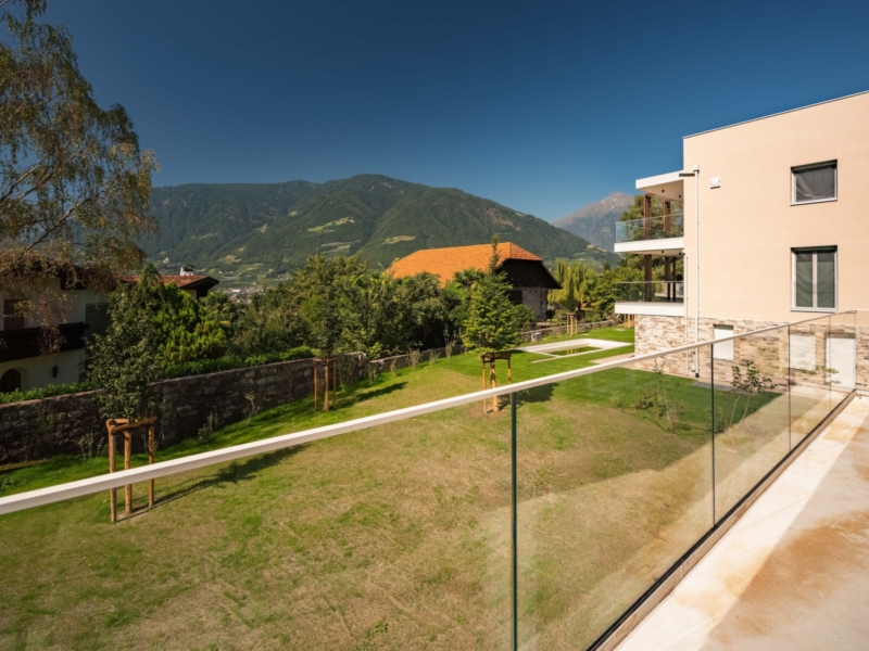 Im Innenbereich kann der Käufer sämtliche hochwertigen Materialien individuell auswählen, darunter Böden, Fliesen, sanitäre Anlagen und Türen, sodass das Haus perfekt auf persönliche Wünsche abgestimmt werden kann. Die Villa verfügt über einen Aufzug im gesamten Haus, eine Dachterrasse mit wunderschöner Aussicht über das Burggrafenamt sowie ein Untergeschoss mit Garage mit fünf Stellplätzen, Hobbyraum und Kellerräumen.