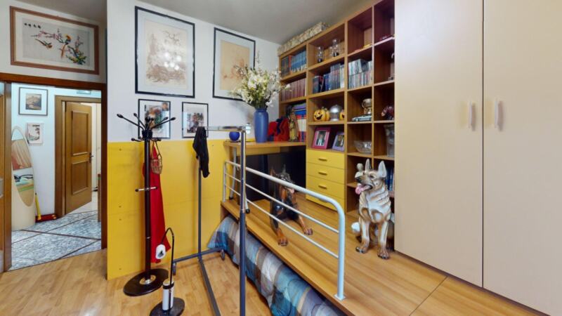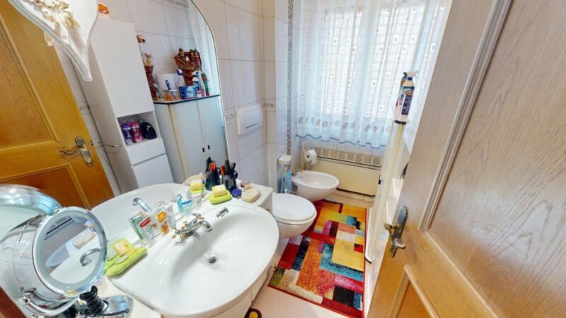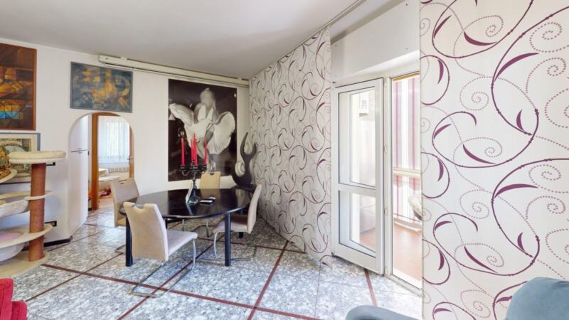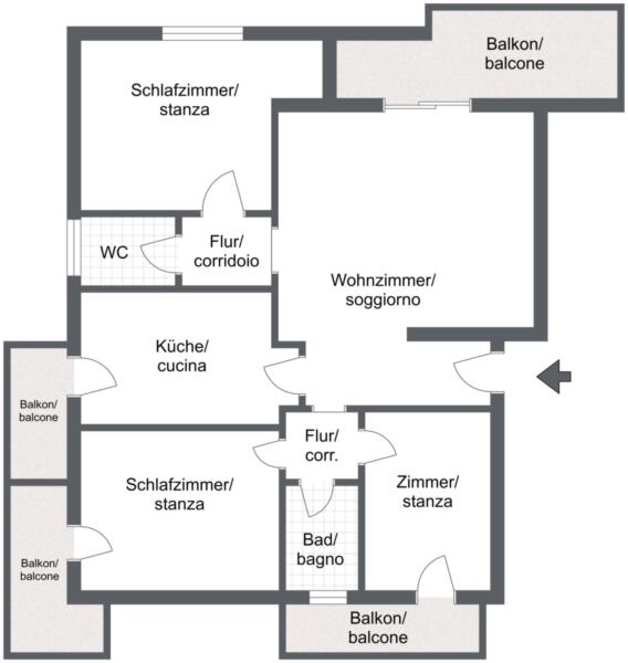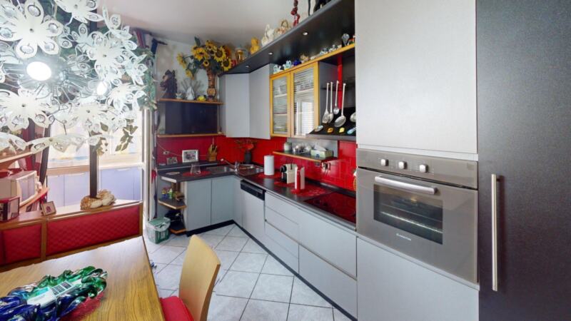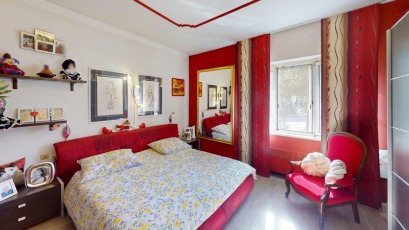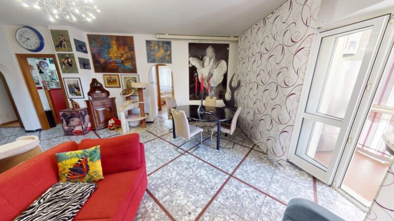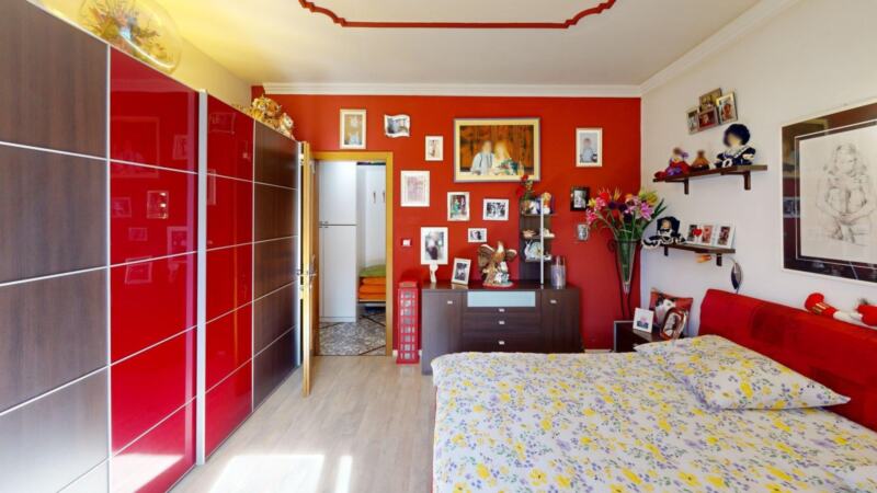 Sie besteht aus einem großzügigen Wohnzimmer mit Balkon, einem Schlafzimmer mit Dusche, einem weiteren Schlafzimmer mit Balkon, einem zusätzlichen Zimmer mit Balkon, einer separaten Küche mit eigenem Balkon, einem Tages-WC sowie einem Badezimmer mit Badewanne.