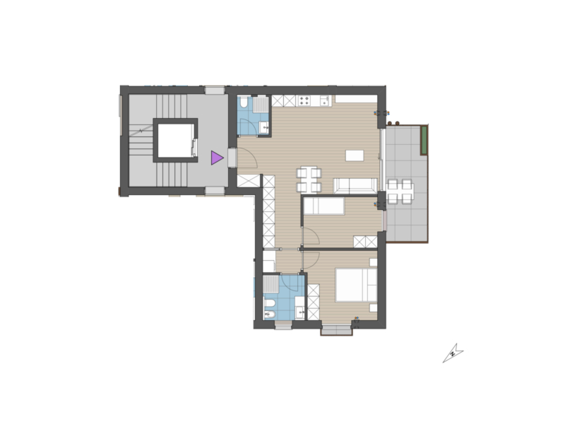 Diese attraktive Wohnung befindet sich im zweiten Obergeschoss eines modernen Neubaus in Meran und überzeugt durch ihre durchdachte Raumaufteilung. Der großzügige Wohnbereich mit offener Küche bildet das Herzstück der Wohnung und öffnet sich zum Balkon, der den Wohnraum ideal ergänzt und Platz für entspannte Stunden im Freien bietet. Zwei Schlafzimmer ermöglichen eine flexible Nutzung – etwa als Kinderzimmer, Arbeitsbereich oder Gästezimmer. Das Badezimmer mit Fenster sorgt für Tageslicht und gute Belüftung, während der praktische Korridor eine klare Trennung zwischen Wohn- und Schlafbereich schafft. Große Fensterfronten lassen viel Licht herein und verleihen der Wohnung eine helle, freundliche Atmosphäre. Die Immobilie liegt in zentrumsnaher und krankenhausnaher Lage mit guter Anbindung an öffentliche Verkehrsmittel und Einkaufsmöglichkeiten. Der Neubau wurde nach dem Standard eines Klimahauses A Nature errichtet. Garagen sind gegen Aufpreis erhältlich, und da es sich um einen Neubau handelt, können persönliche Wünsche bei der Innenausstattung berücksichtigt und das Innere individuell gestaltet werden.