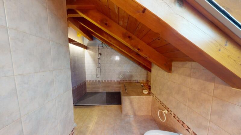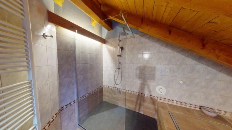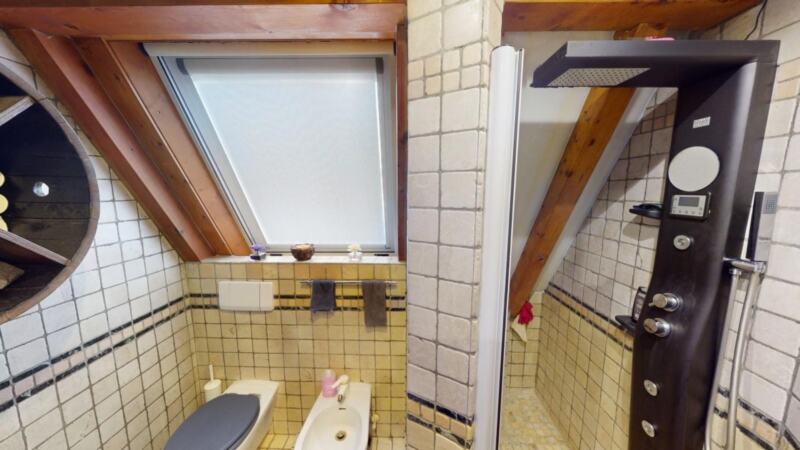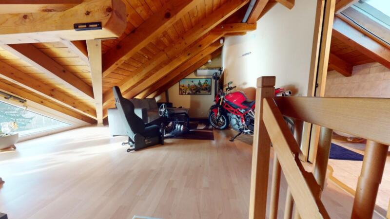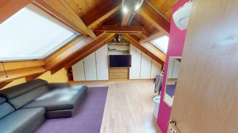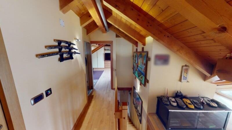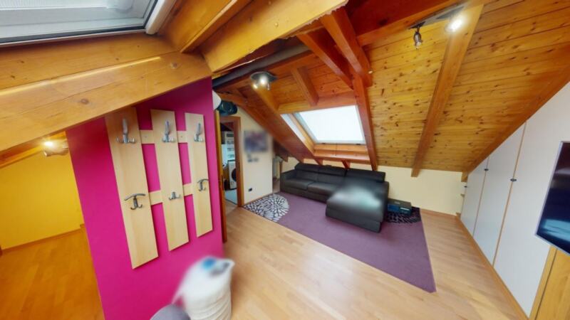 Über die wunderschöne helle Eichenholztreppe gelangt man in das obere Stockwerk, das mit einem zweiten Wohnbereich aufwartet. Ergänzt wird diese Ebene durch ein Badezimmer mit großzügiger Walk-in-Dusche, einen Waschraum mit modernster Heiztechnik sowie ein beeindruckendes 30 m² großes Doppelzimmer – perfekt für Kinder oder Jugendliche, die hier ihre eigene Rückzugs- und Privatsphäre genießen können, oder als Arbeit- bzw. auch Hobbyraum.
