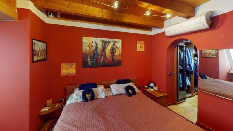 Vom Eingangsbereich aus erreicht man außerdem ein Hauptschlafzimmer mit begehbarem Kleiderschrank, ein elegantes Badezimmer mit edlen toskanischen Marmorelementen sowie eine geräumige Küche mit Zugang zu einer weiteren Terrasse. Hier befinden sich ein gemauerter Grill sowie ein praktischer Außenbrunnen, ideal für die Bewässerung der Pflanzen während der Sommermonate.