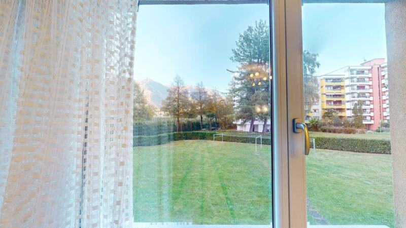 - Schlafzimmer mit Zugang zum geschlossenen Balkon mit Blick ins Grüne und auf die umliegenden Berge