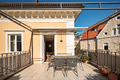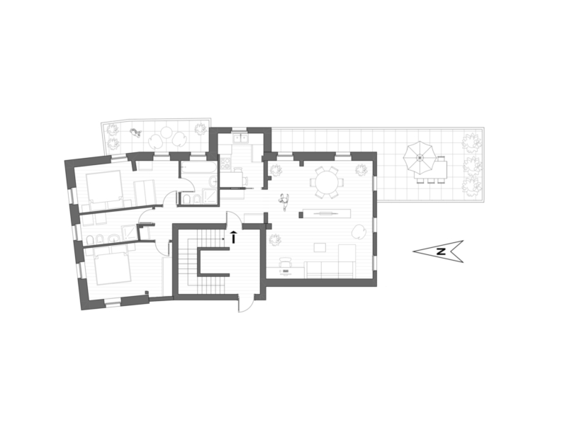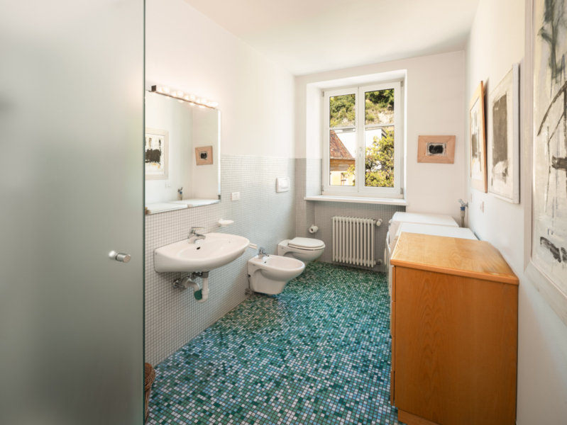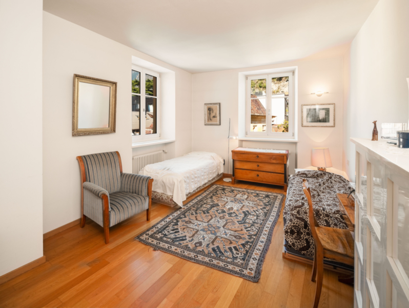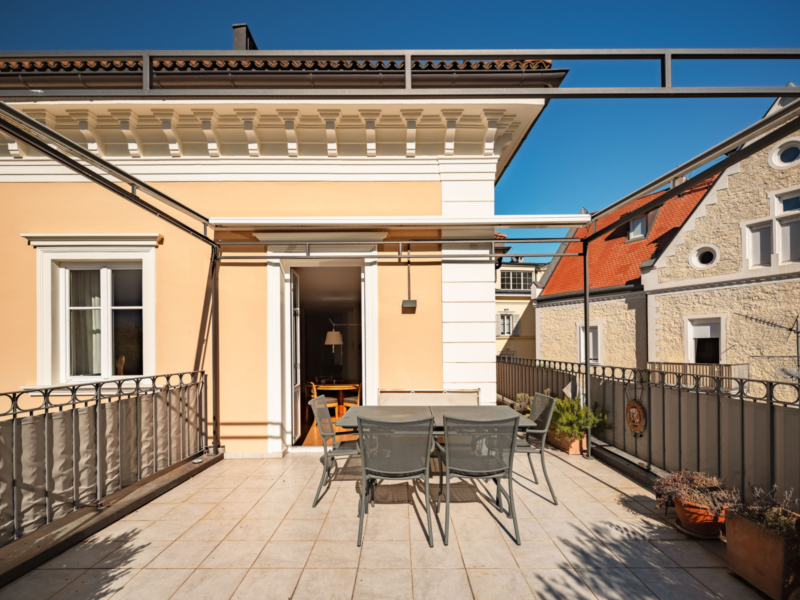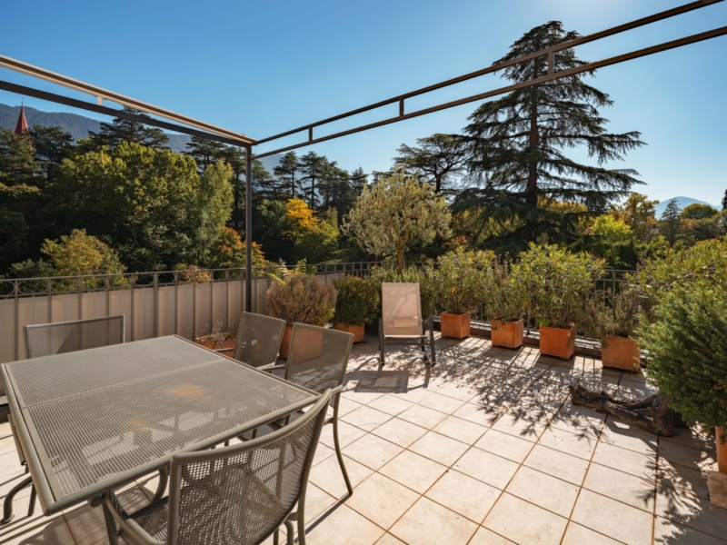 Das Gebäude wurde 2003 umfassend kernsaniert und mit hochwertiger Ausstattung sowie moderner Technik versehen, ohne den historischen Charakter zu verlieren. Die Wohnung bietet einen großzügigen Grundriss mit hellem Wohnzimmer, getrennter Küche, zwei großen Zimmern, zwei Bädern mit Fenstern, Gang, Balkon und eine wunderschöne Panorama-Terrasse – perfekt für stilvolles Wohnen in der Meraner Altstadt. Von der Terrasse aus genießt man den Blick auf die Berge, Dächer der Altstadt und die nahe gelegene Passer.