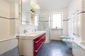 •Ein Badezimmer mit Fenster, ausgestattet mit Dusche und Badewanne