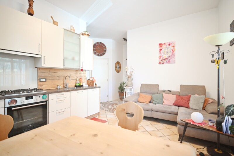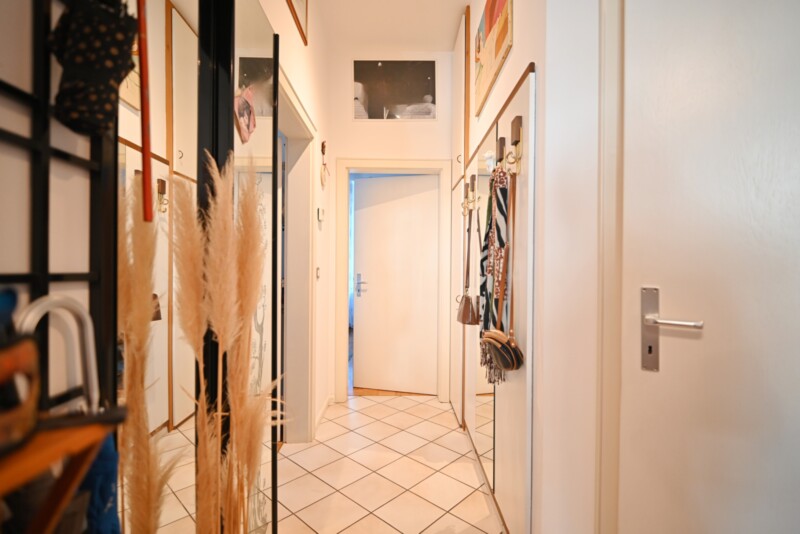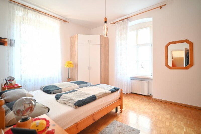 Die Wohnung befindet sich im Hochparterre eines Gebäudes ohne Aufzug und bietet einen gut durchdachten Grundriss. Das Wohnzimmer ist harmonisch mit der Küche verbunden und bildet das Herzstück der Immobilie. Ein Schlafzimmer und ein zusätzliches Zimmer sorgen für ausreichend Rückzugsmöglichkeiten, während das Badezimmer funktional gestaltet ist. Ein Großteil der Einrichtung verbleibt in der Wohnung und ermöglicht einen sofortigen Einzug ohne zusätzlichen Aufwand.