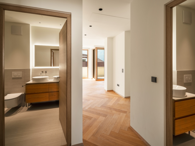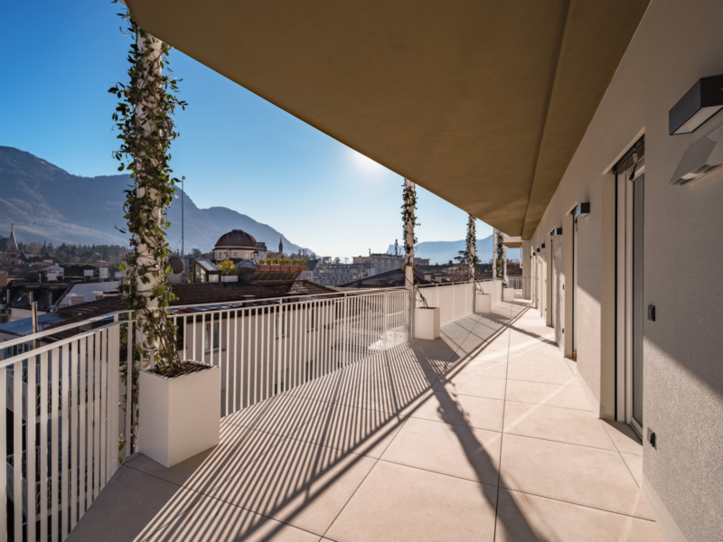 Das Sparkassenhaus steht für exklusives Wohnen im Herzen von Meran und vereint zeitlose Architektur mit höchstem Qualitätsanspruch. Die neu errichteten Wohnungen überzeugen durch klare Linien, edle Materialien und ein harmonisches Zusammenspiel von Design und moderner Technik. Großzügige Fensterflächen schaffen lichtdurchflutete Räume mit eindrucksvollen Ausblicken über die Stadt. Fußbodenheizung, moderne Klimatechnik zum Kühlen und Heizen sowie individuell regelbare Temperaturzonen sorgen ganzjährig für ein angenehmes Wohngefühl. Ein intelligentes Smart-Home-System ermöglicht die zentrale Steuerung von Heizung, Beleuchtung und Raffstores. Terrassen mit begrünten Pflanzbereichen und integrierter Bewässerung unterstreichen den exklusiven Charakter, während barrierefreie Zugänge und ein Lift bis in alle Wohngeschosse zusätzlichen Komfort bieten.