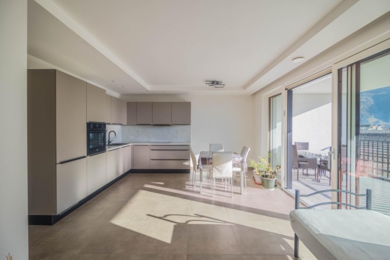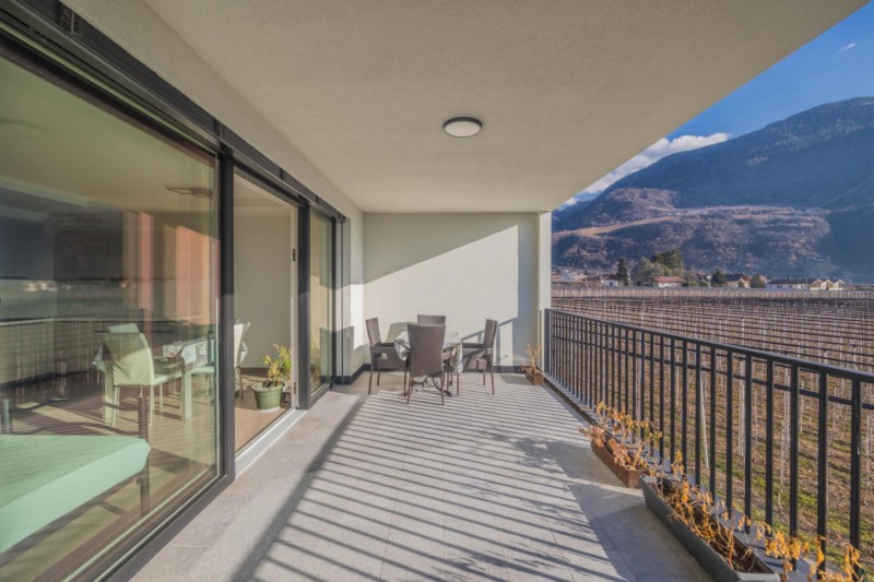 Die Wohnung ist nach Süd-Osten ausgerichtet und präsentiert sich besonders hell und sonnig. Große Fensterflächen eröffnen eine freie, unverbaubare Aussicht über weitläufige Obstwiesen und schaffen eine angenehme Verbindung zwischen Innen- und Außenraum. Ein besonderes Highlight ist die großzügige, überdachte Terrasse, die ausreichend Platz zum Sonnen, Entspannen und Verweilen bietet und zu jeder Tageszeit genutzt werden kann.