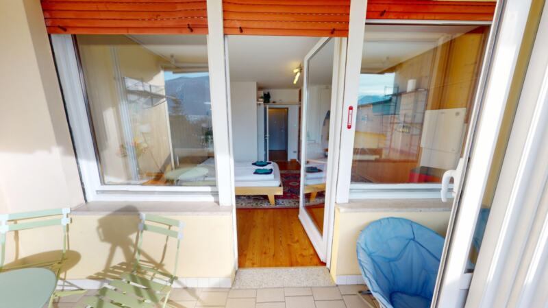 - einem Wohn-/Schlafbereich mit Zugang zum Südbalkon/Veranda mit freiem, unverbauten Blick