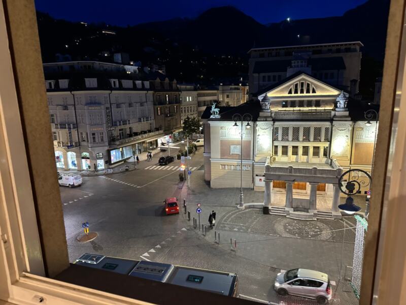 In zentraler und begehrter Lage am Theaterplatz in Meran wird diese großzügige Zweizimmerwohnung mit ca. 80 m² Nettowohnfläche zur Miete angeboten. Die Wohnung befindet sich im 4. Obergeschoss eines gepflegten Gebäudes mit Aufzug und überzeugt durch ihre Helligkeit, den durchdachten Grundriss sowie den wunderschönen Panoramablick.